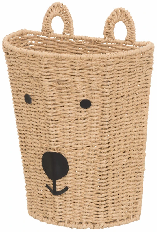 4Living Nalle seinäkorin avulla saat helposti lastenhuoneeseen tai eteiseen säilytystilaa viemättä yhtään lattia-alaa. Seinäkori kestää painoa enintään 2 kg ja siinä on hauska nallen kasvoja muistuttava kuviointi. Ripustuslenkit ovat kuin nallen korvat. Kori on paperinarusta punottu.