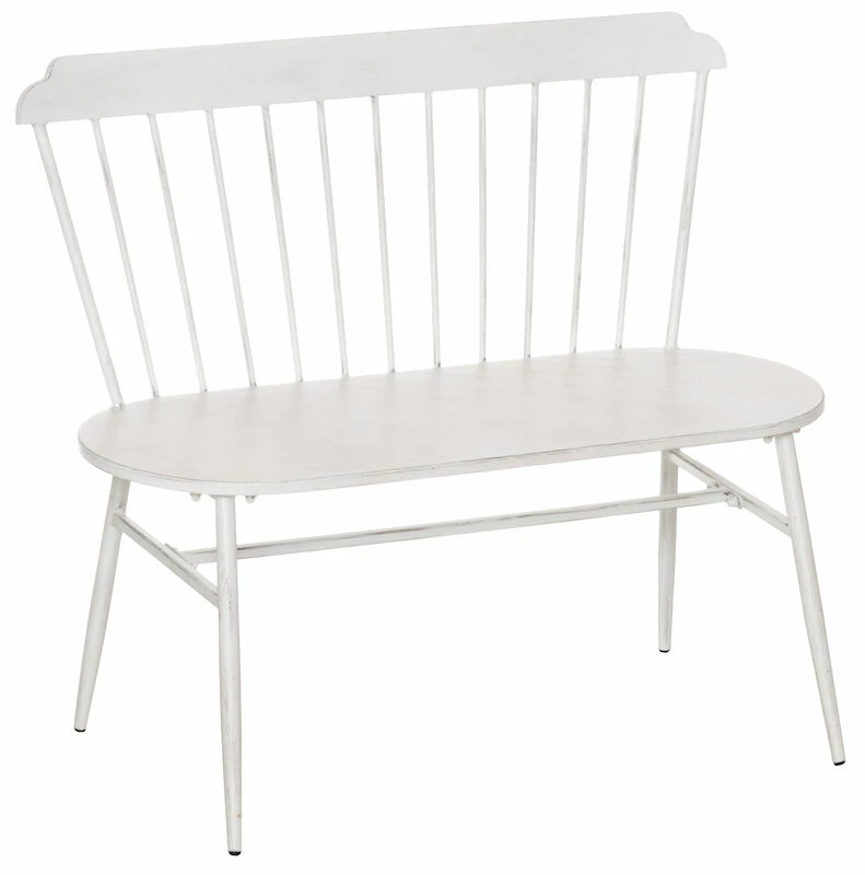 Ihastuttava 4Living Toggle puutarhapenkki sisä-ja ulkokäyttöön. Metallista valmistetun penkin selkänojassa on pinnat ja istuinosa on kauniisti pyöristetty. Valkoinen väri on antiikkimaalattu tuoden tuolille kauniin rustiikkisen ilmeen.