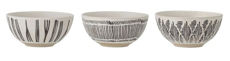 Bloomingvillen Eliana on kolmen kulhon sarja. Jokaisessa kulhossa on omanlaisena boheemi kuviointi, jotka kuitenkin täydentävät toisiaan. Kulhot on valmistettu kivitavarasta käsityönä, joten kahta täysin samanlaista ei löydy. Kulhot ovat täydelliset rentoon ja ihastuttavaan, omapäreiseen kattaukseen. Voidaan pestä astianpesukoneessa. Mikron ja uunin kestävät. Tilavuus 250 ml.