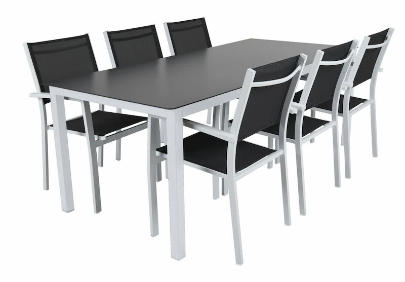Moderni Brafab Rana ruokapöytä lisää tyylikkyyttä ja toiminnallisuutta ulkotiloihin. Pöytä on suunniteltu kestämään vaihtelevia sääolosuhteita ja tarjoamaan pitkäaikaista käyttöä modernin ulkonäkönsä lisäksi. Se sopii täydellisesti ulkotilojen huoltovapaaseen sisustamiseen parvekkeella, terassilla kuin puutarhassakin. Pöydän hieman eläväpintainen ruiskumaalattu lasikansi on helppo pitää puhtaana ja kestää hyvin ulkoisia rasituksia. Tyylikkäänä yksityiskohtaa pöytälevyn pyöristetyt kulmat. Alumiinirunko takaa kestävyyden ja keveyden, mikä helpottaa pöydän liikuttelua tarvittaessa. Täydennä kokonaisuus .