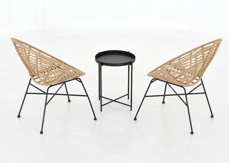 Day Susa-Envy Eva parvekesettiin kuuluu monikäyttöinen ja kestävä Day apupöytä ja kaksi upeaa Envy Nora puutarhatuolia. Pöytä on näppärän kokoinen ja sopii siksi täydellisesti parvekesettiin. Envy Nora puutarhatuolissa on boheemi look, mutta se on skandinaavisen tyylikäs. Istuinosa on polyrottinkia, joka jäljittelee luonnonrottinkia. Polyrottinki on suosittu ja helppohoitoinen puutarhakalustemateriaali. Koko ryhmä on kokonaisuudessaan kevyt ja sitä on helppo siirrellä. Tuolit toimitetaan jalat irrallaan ja pöytä vaatii pienen asennuksen.