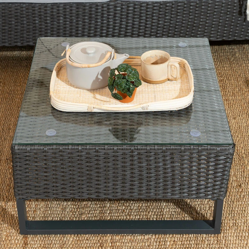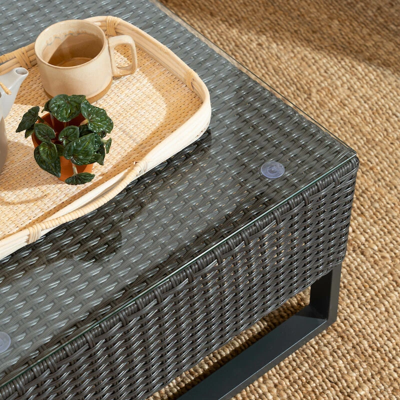 Kaunis ja tukeva Dublin sohvapöytä. Sohvapöydässä on lasikansi, jonka vahvuus on 5 mm. Lasi on karkaistua lasia. Jalat on terästä ja pöytäosa polyrottinkia. Yhdistä muihin Dublin sarjan tuotteisiin.