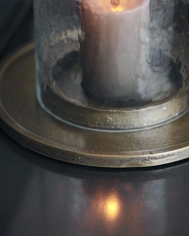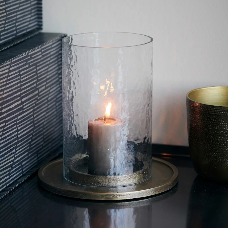 House Doctor Cylo lyhdyllä tuot lämpöä ja valoa syysiltoihin. Kynttilänjalka on muodoltaan yksinkertainen, mutta siinä on hienoja yksityiskohtia. Pohja on valmistettu alumiinista ja messinkiviimeistely lisää kultaisen silauksen. Lasissa on hieno, hieman aaltoileva rakenne, joka tulee kauniisti esille, kun lisäät kynttilän. Tuotteen viimeistely voi vaihdella tuotekohtaisesti tehden jokaisesta lyhdystä yksiöllisen.