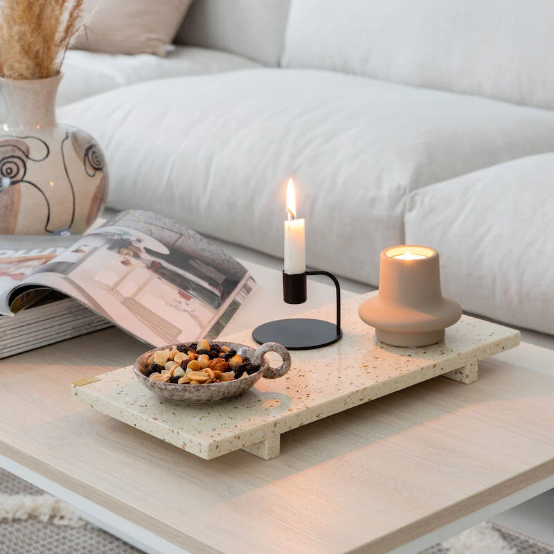 Betonista valmistettu Hübsch Stone tarjotin pysyy tukevasti paikoillaan ja toimii myös keittiön sisustus elementtinä.