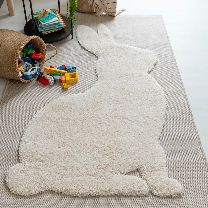 Jänö lastenmatto on helppohoitoinen ja pölyämätön matto lastenhuoneeseen. Jänön kuva on pehmeää nukkaa, joka on koholla. Matto on muuten sileäksi kudottua polypropeenia. Neutraali värimaailma rauhoittaa lastenhuoneen tunnelmaa. Maton paksuus noin 1 cm ja Jänö kuvioinnin nukan pituus on noin 2 cm, joten maton kokonaispaksuus Jänö kuvioinnin kohdalta on noin 3 cm.