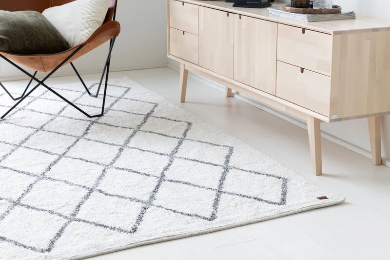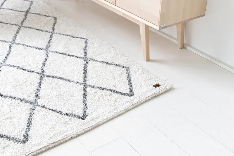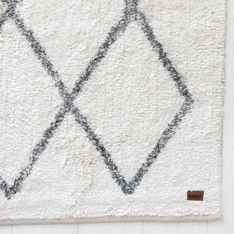 Trendikäs salmiakkikuvioilla varustettu puuvillamatto on ajaton ja sopii monenlaiseen sisustukseen ja tilaan. Väri valkoinen, materiaalina 100% puuvilla.Matto on tuftattu. Matossa oleva salmiakkikuviointi on painettu mattoon. Maton päädyissä on kestävä kanttaus. Suositellaan liukuestettä maton alle.
