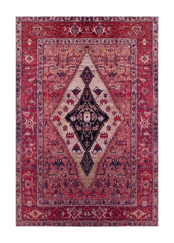 K/M Tibet Afghan matto niin sisä- kuin ulkokäyttöön. Maton materiaalina on 100% polypropeeni. Matossa on kaunis, punainen sävy ja upea vintage-henkinen kuviointi. Mattoa on saatavilla useassa eri koossa. Maton paksuus on noin 7 mm. Pesuohjeena tahrojen poisto hieman haalealla vedellä, miedolla pesuaineella ja froteepyyhkeellä tai pehmeällä harjalla. Koko maton puhdistamiseen suositellaan ammattimaista pesua. Matossa ei ole UV-suojaa, joten maton väri voi haalistua voimakkaassa auringonvalossa.