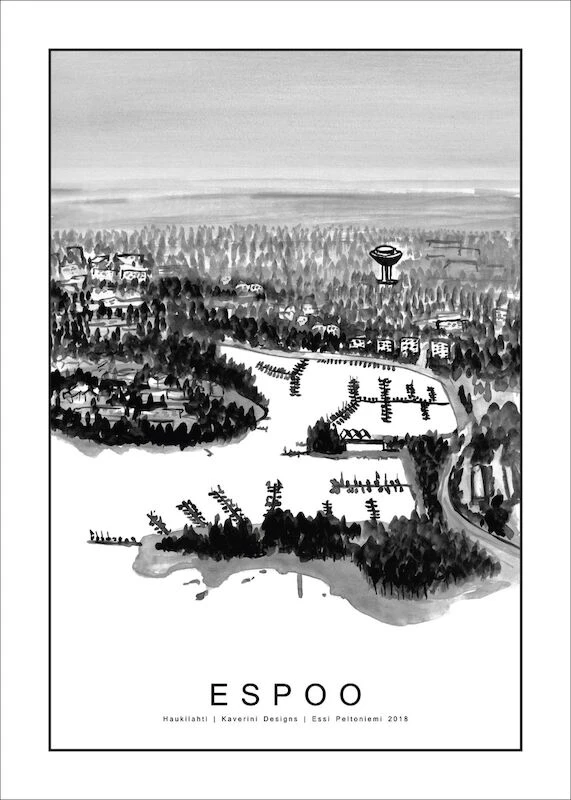 Espoon Haukilahdesta maalattu taiteellinen kuva on Essi Peltoniemen suunnittelema ja käsin maalaama. Eteläisen Espoon maamerkkinä pidetty Haukilahden vesitorni loistaa maalauksen horisontissa. Vesitorni on rakennettu betonista kallion päälle, josta se näkyy merelle asti. Maalaus on painettu julisteeksi korkealaatuiselle 200 grammaiselle paperille Vihannissa. Julisteesta kaksi eri kokovaihtoehtoa.