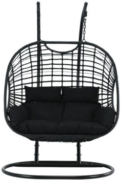 Tie Kahden Istuttava Riipputuoli Jalustalla Musta, Musta Pehmuste