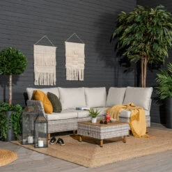 Lehdokki Avokulmasohva Sohvapöydällä Greige/luonnonvalkoinen