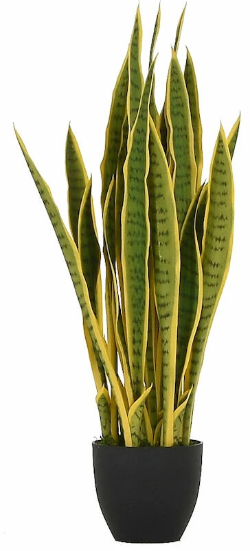 Silkkiviherkasvi Sansevieria on todella aidon ja elävän näköinen. Anopinkielessä on keltaisen ja vihreän eri sävyjä. Anopinkielen korkeus on 80 cm, ruukun kanssa 90 cm. Kasvi toimitetaan pienessä istutusruukussa, jota voi käyttää sisustusruukkuna.