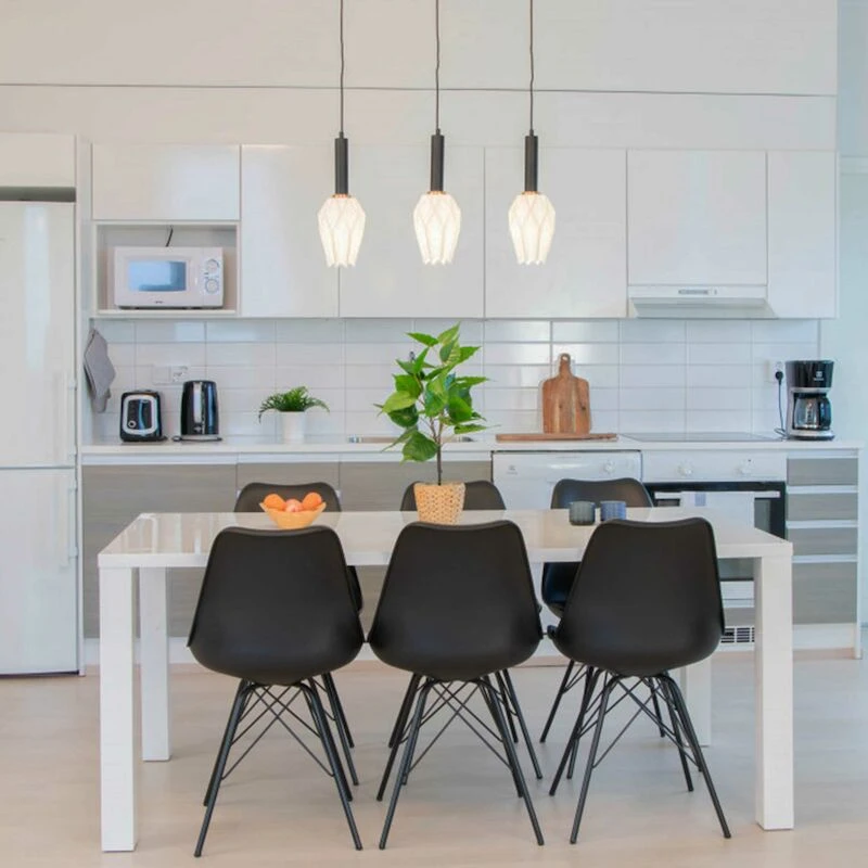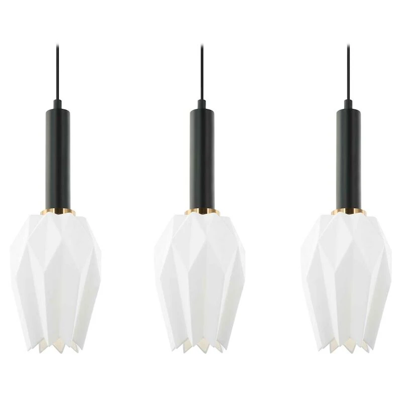 3-osaisessa Sessak Raven riippuvalaisimessa on todella kauniit, tulppaaneja muistuttavat maitolasikuvut. Mattamustat lampunkannat messinkisillä yksityiskohdilla tuovat särmää. Maitolasiset kuvut päästävät valoa hieman lävitse. Suurin osa valosta suuntautuu alaspäin, joten valaisin sopii upeasti esimerkiksi pöydän ylle. Valaisimessa yhdistyy klassinen ja moderni muotoilu, joten valaisin on helppo sijoittaa monenlaisiin sisustuksiin. Valaisin on helposti asennettavissa koukkukiinnityksellä ja valaisinpistotulpalla. Valonlähde 3x E27, lampun maksimikoko Ø45 mm.