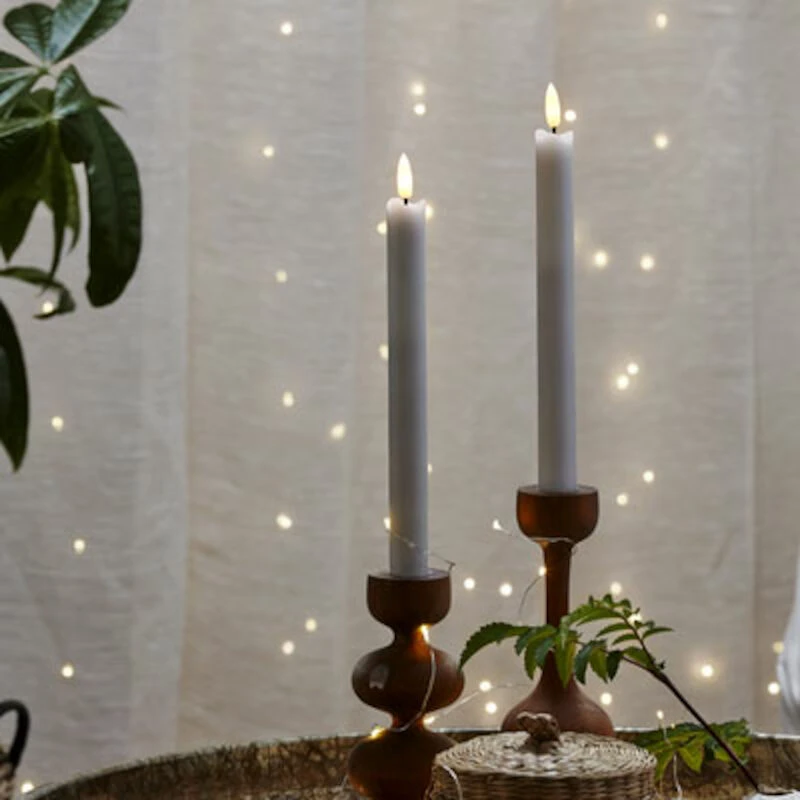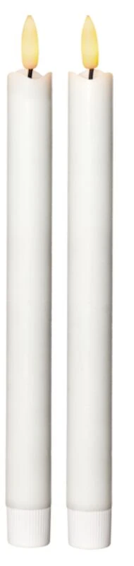 Aidonnäköiset Flamme LED-kynttilät on tarkoitettu sisäkäyttöön. Kynttilöiden aidonnäköisellä liekillä luot lämmintä tunnelmaa. Liekin väri lämpimän valkoinen. Kynttilöiden ajastimella voit ajastaa kynttilän palamaan 6 tunnin ajan kerrallaan. Kynttilöissä on kiinteä LED, jonka paloaika on noin 10000 tuntia. Kynttilät toimivat yhteensä neljällä AAA-paristolla, jotka eivät sisälly pakkaukseen. IP20.