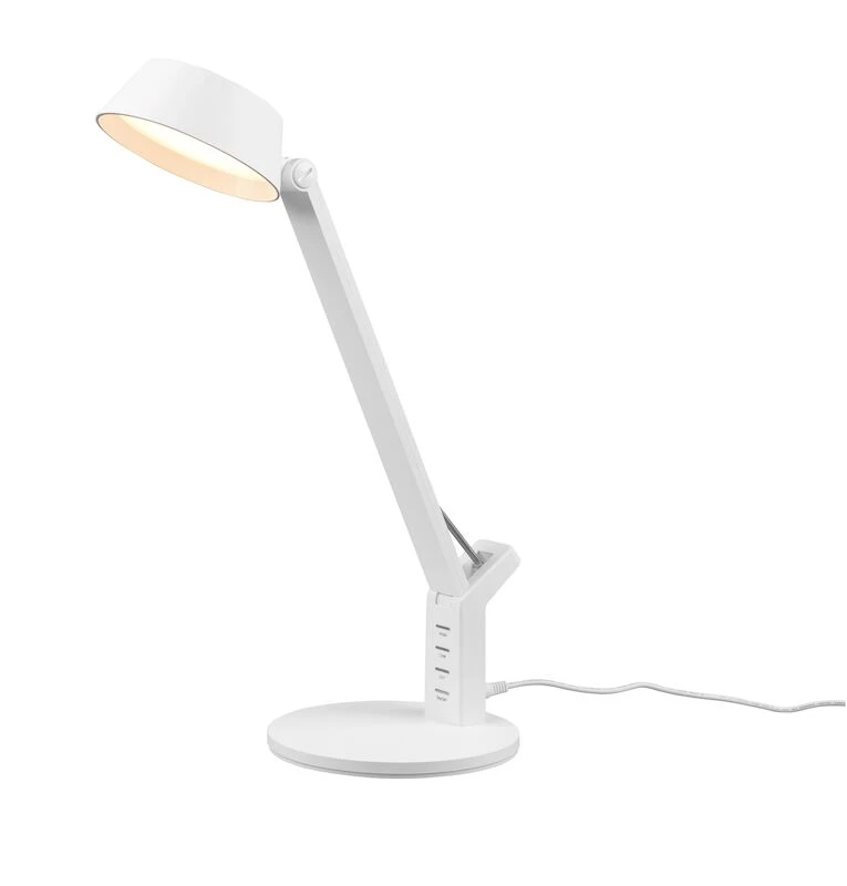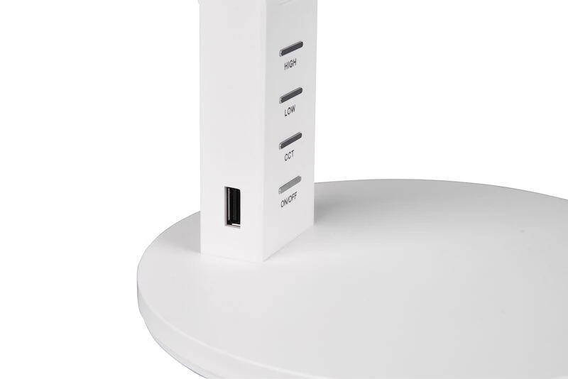 Mattavalkoinen Ava pöytävalaisin on täydellinen valinta työpisteelle. Valaisimen ominaisuudet mahdollistavat halutun valotehon ja värisävyn eri tarpeita varten. Kupu suunnattavissa. Värisävy säädettävissä kolmeportaisesti (3000K + 4000K + 6300K) ja valoteho portaattomasti integroidulla himmentimellä. Muistitoiminnon ansiosta viimeksi valitut asetukset jäävät muistiin, kun valo seuraavan kerran laitetaan päälle. Valaisimen rungossa USB-liitäntä, joka mahdollistaa vaikkapa puhelimen latauksen. Valonlähde integroitu LED 5W. Suojaluokka 2.