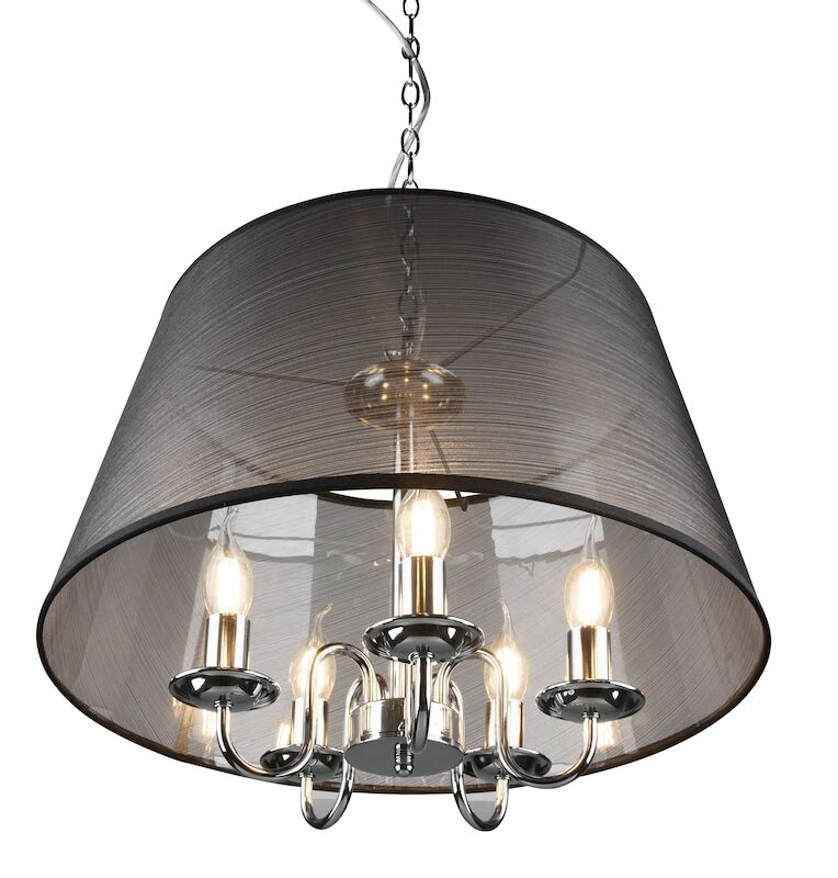 Upea Trio Cima riippuvalaisin on tyyliä hehkuva riippuvalaisin. Krominvärinen tai mattamusta runko ja läpikuultava tekstiilivarjostin luovat tyylikkään kokonaisuuden. Valonlähde 5xE14, polttimot eivät sisälly mukaan. Maksimi ripustuskorkeus 150 cm ja varjostimen halkaisija 50 cm.