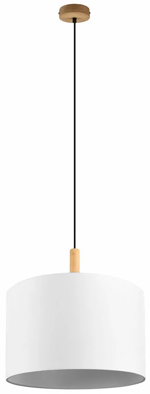 Klassisen Trio Korba riippuvalaisimen varjostin on valkoista tekstiiliä ja kattokuppi kaunista luonnonpuuta. Ripustuskorkeus säädettävissä – maksimi ripustuskorkeus 150 cm. Varjostimen halkaisija 40 cm. Valonlähde 1xE27, polttimo ei sisälly mukaan. Suojaluokka 2. Tutustu myös saman sarjan muihin valaisimiin.