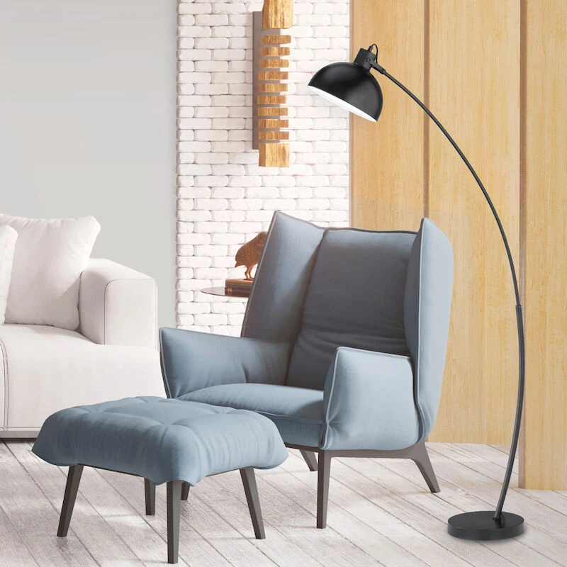Ajattoman tyylikäs metallinen Recife-lattiavalaisin, jossa kaareva varsi. Kupua liikuttamalla voit helposti suunnata valoa haluamaasi suuntaan. Sopii erinomaisesti lukuvaloksi olohuoneeseen.