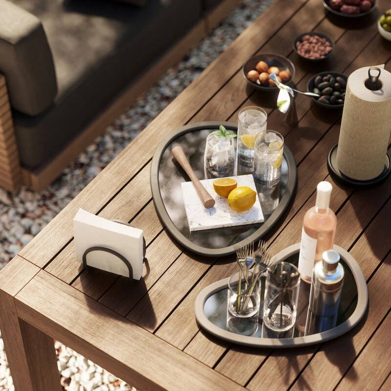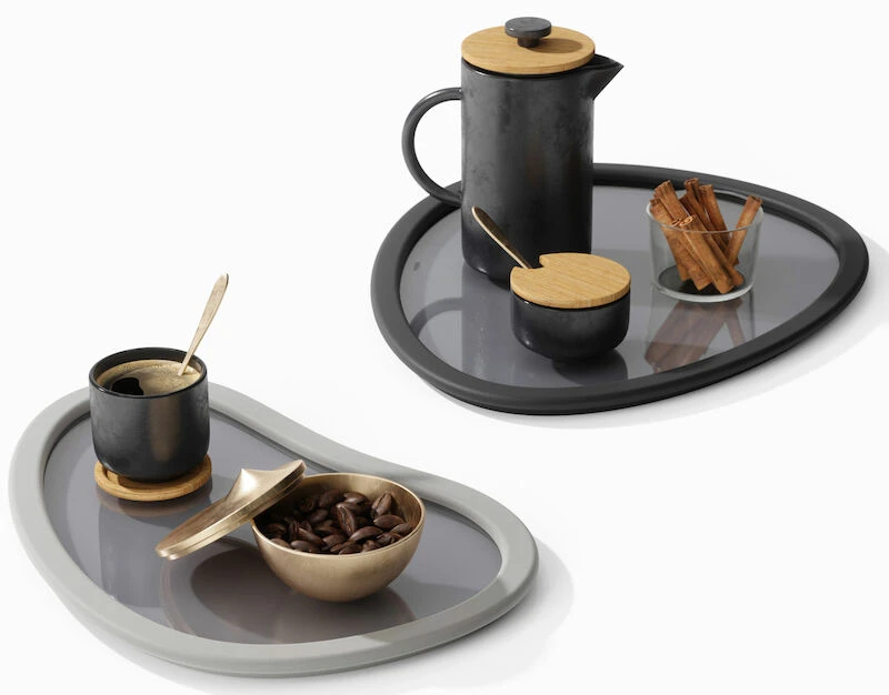 Umbra Hub tarjottimien avulla saat tyylikkäästi tarjoilusi esille. Pakkaus sisältää 2 kpl eri väristä tarjotinta. Tarjottimen reuna on kumia ja pohja sävytettyä lasia jolla on ainutlaatuinen orgaaninen muoto. Reunus lisää kestävyyttä ja tekee tarjottimesta helpomman kuljettaa. Hub toimii myös loistavasti esim. pukuhuoneessa purkkien alla. Loistava lahjaidea! Tarjottimen koot: 43,6x43x2 cm ja 41,9×30,2×2 cm.