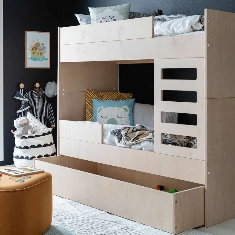 Laatikon pohjana tukeva umpinainen levypohja. Laatikon rakenne on todella tukeva ja laatu erinomainen. Pohjassa on kuusi kappaletta hyvälaatuisia rullia, joiden avulla sängynaluslaatikon siirtäminen on helppoa. Pohja on umpinainen jonka alla on seitsemän tukivaneria tukemassa pohjalevyä. Mikäli laatikossa käytetään patjaa pitää ottaa huomioon, että umpinainen pohja ei ole hyvä patjalle. Patjan alla ei pääse kunnolla ilma kiertämään minkä vuoksi on riski patjan kostumisesta ja jopa homehtumisesta. Mikäli laatikossa käytetään patjaa suosittelemme pohjaan n. 10 ilmareiän poraamista. Sängynaluslaatikolle saat reilusti säilytystilaa sängynalle esimerkiksi leluille tai vuodevaatteille.